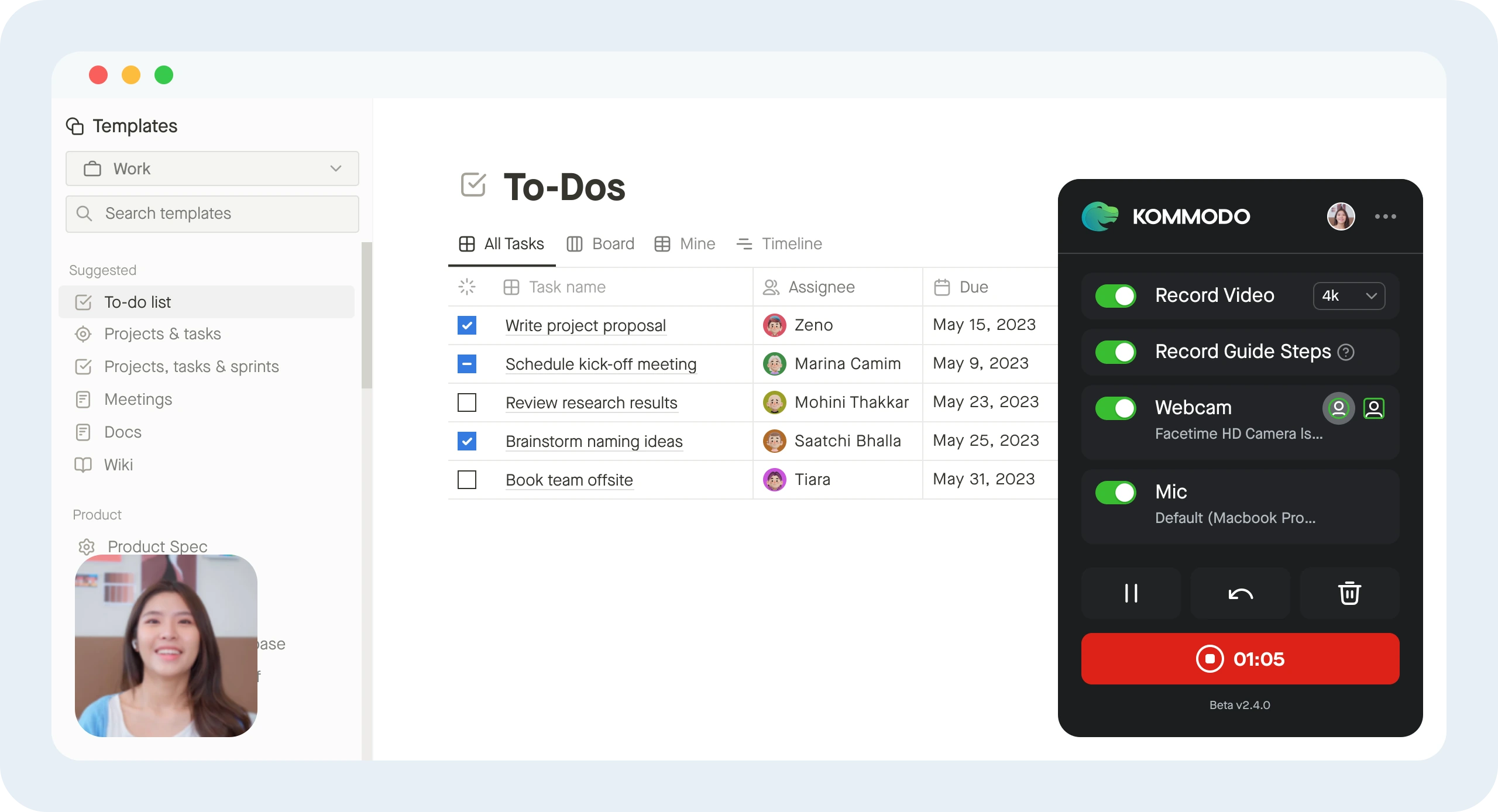 Sync Kommodo with your Google calendar and record your meetings. Your video call recordings can now live with your other work videos inside Kommodo.